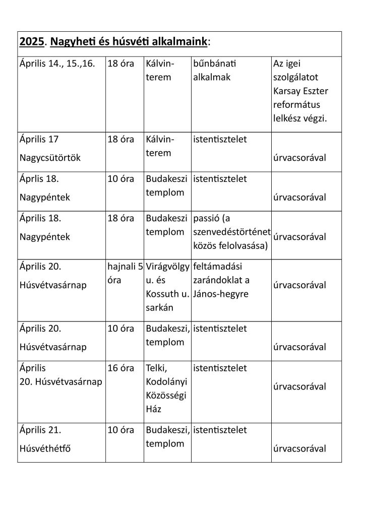 Kedves Testvérek! Rendszeres vasárnapi Istentiszteleteinket 10 órakor tartjuk. Hónap utolsó vasárnapja Úrvacsora